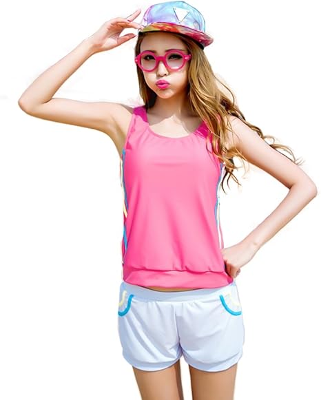 Amazon レディース タンキニ水着ビキニ 体型カバー ショートパンツ 2種類付き 大人用 女性用 ママ用 女の子用 フィットネス用ジム用 スポーツ用 タンキニ 通販